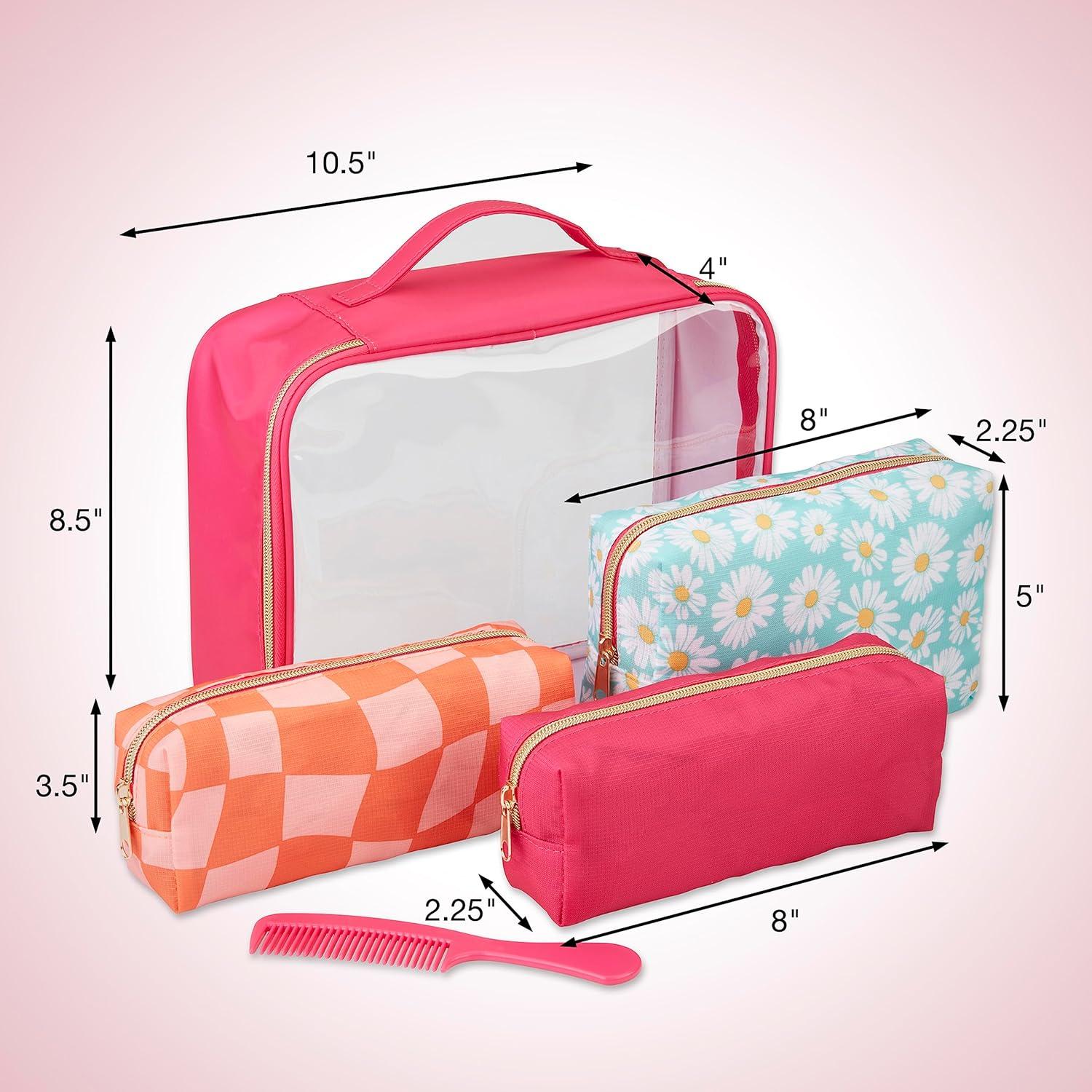 imageConair Makeup Bag Large Double Zip Toiletry and Cosmetic Bag Perfect Size for Use At Home or Travel Double Zip Organizer Shape in BlackPink  Daisy Print