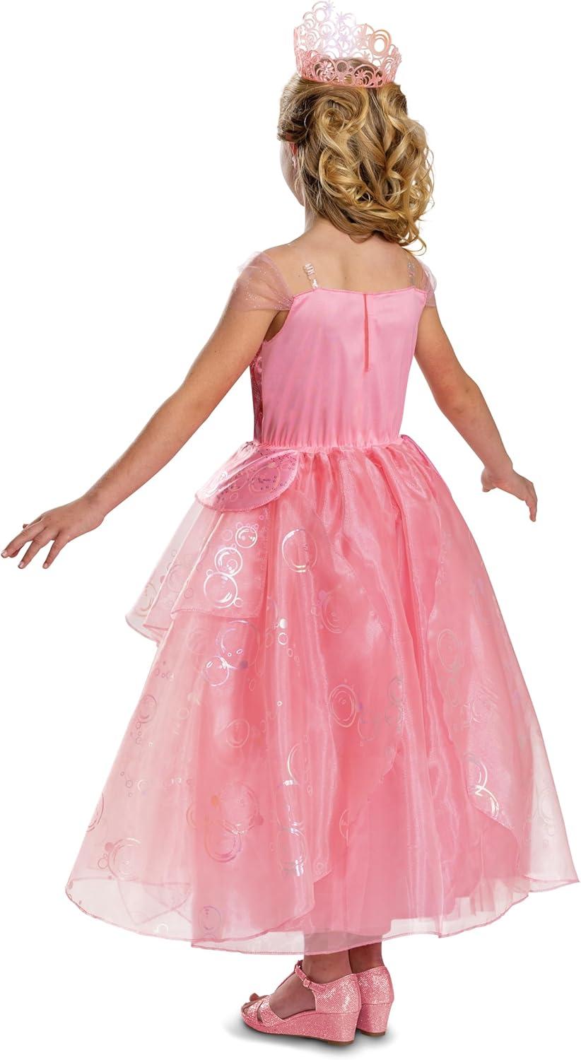 Dress up as Glinda the Good in this Deluxe costume! Officially licensed Universal Pictures’ Wicked gown radiates ethereal elegance with its beautiful pink satin fabric, printed bodice with foil and sequin accents, a multi-layered organza skirt that shimmers in hues of soft pastels, capturing the essence of Glinda's aura. It also features iridescent foil bubble artwork throughout the skirt, which captures her charm in every stitch and shimmer. Wand and tiara sold separately. Includes Costume Dress