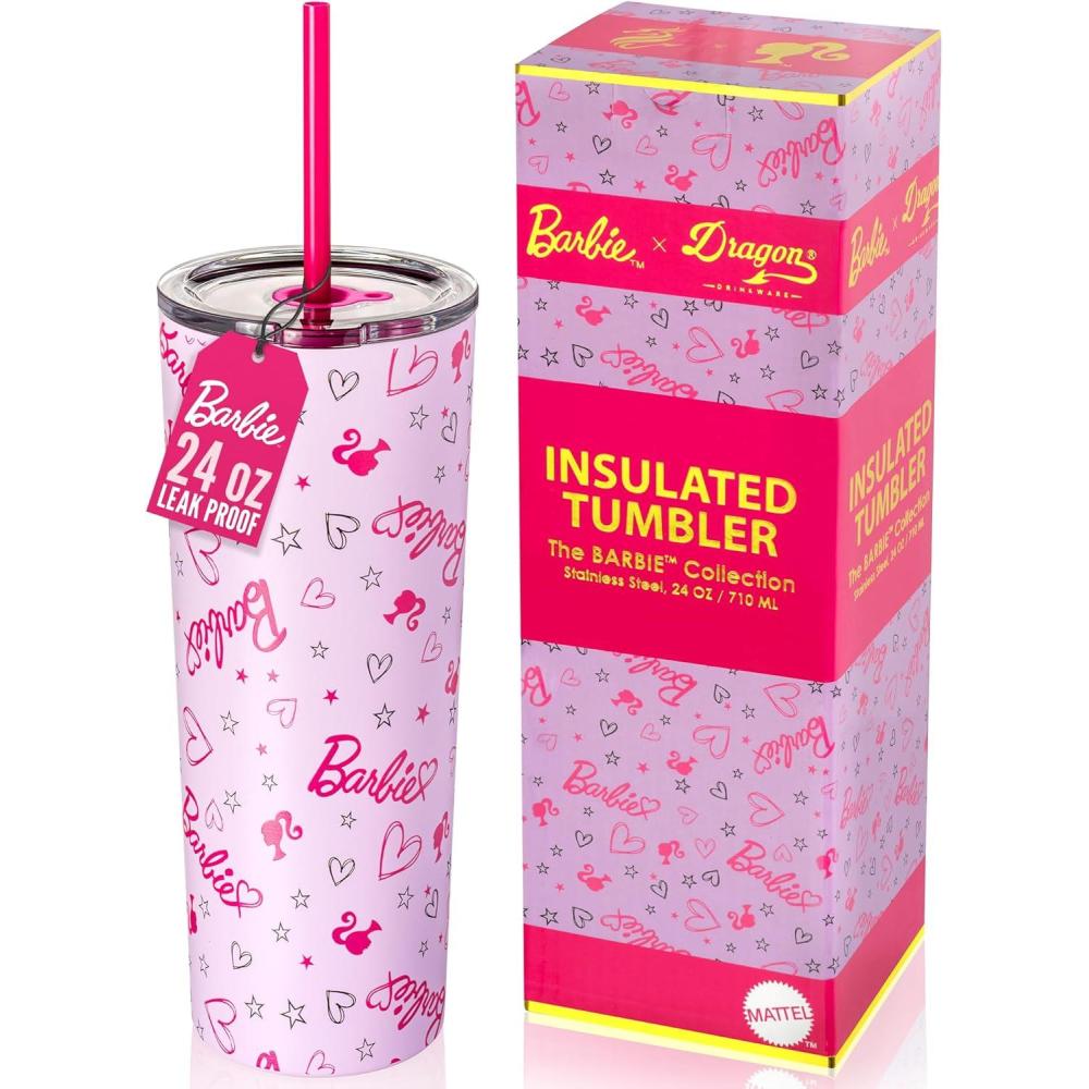 imageDragon Glassware x Barbie Vacuum Insulated Tumbler with Lid and Straw  24 oz Tumbler Cup with 2 Straws  Stainless Steel Tumbler with Straw for Water Iced Tea  Travel Coffee Tumbler  Love Out LoudBarbie  Love Out Loud