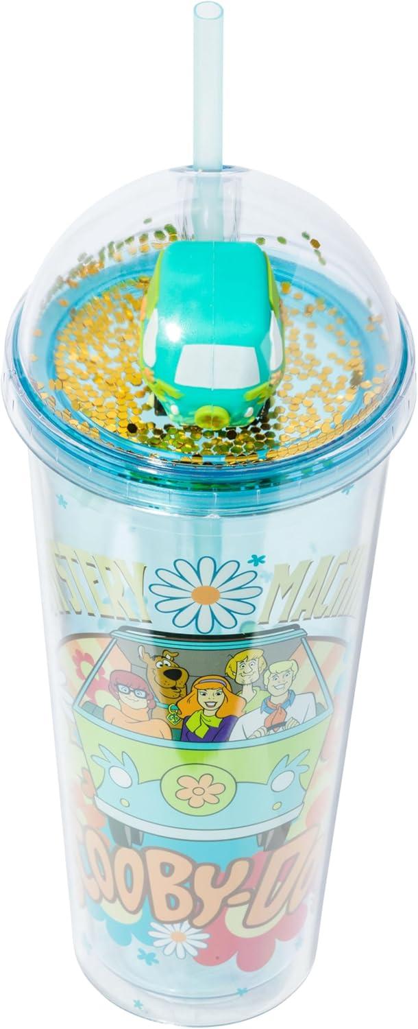 Silver Buffalo Disney Tim Burton Nightmare Before Christmas Moon Scene Featuring Jack Skellington, Sally, and Zero Dome Glitter Top Travel Tumbler, 24 Ounces(Scooby Doo)
