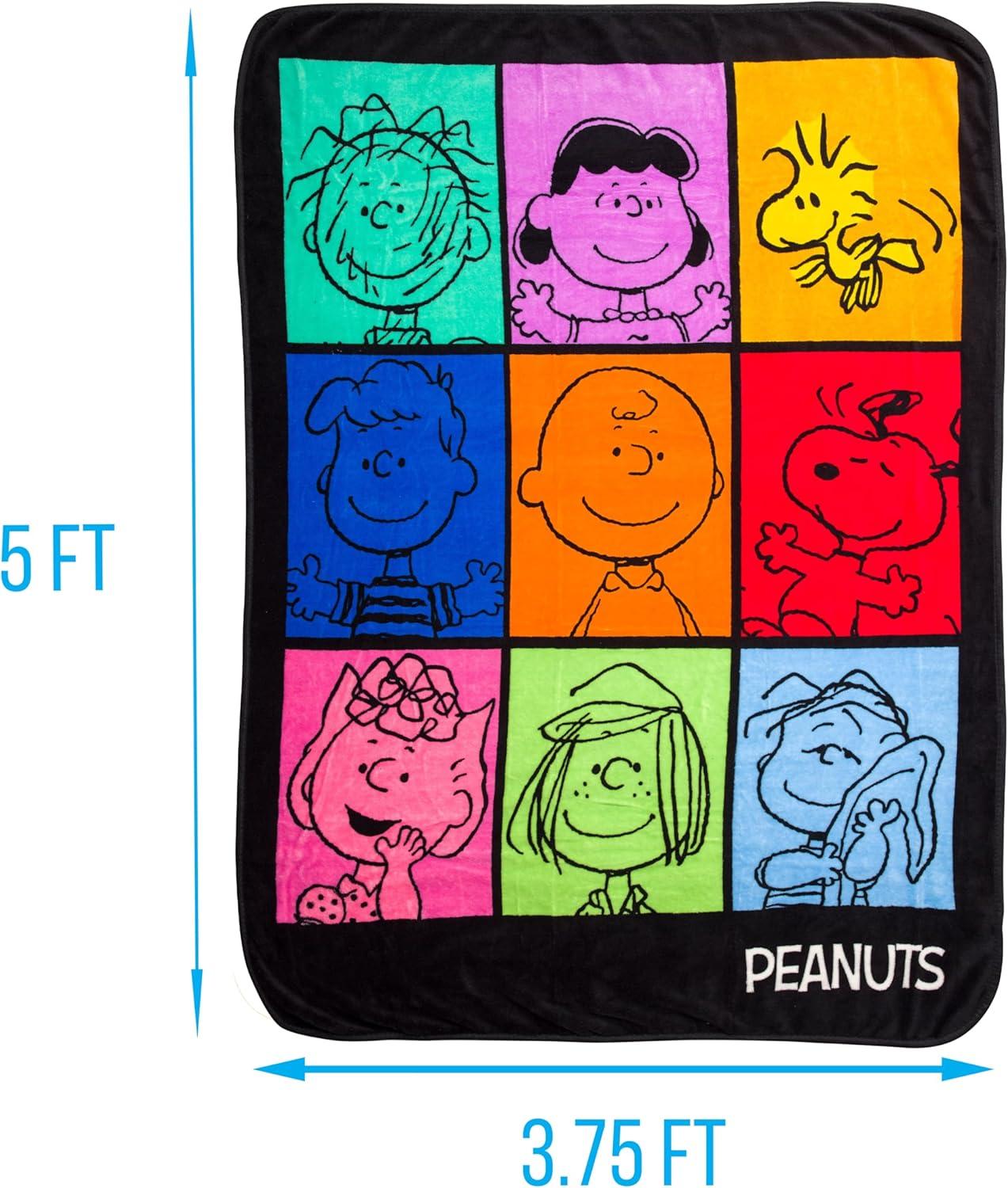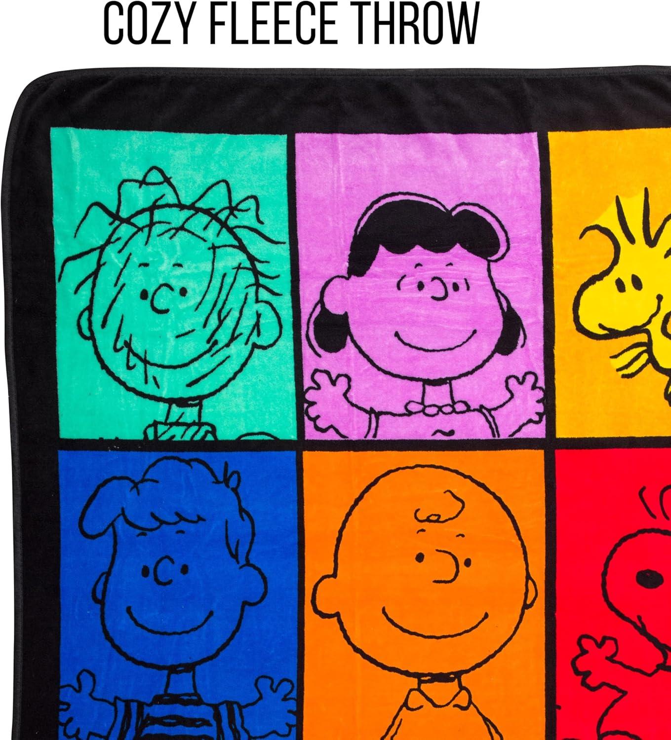 Silver Buffalo Wicked Featuring Glinda and Elphaba Double Sided 45″ x 60″ Fleece Throw, Soft and Cozy Blanket, 250 GSM(Peanuts Character Grid)