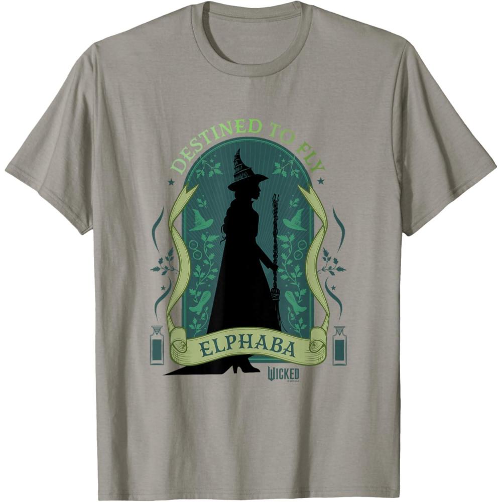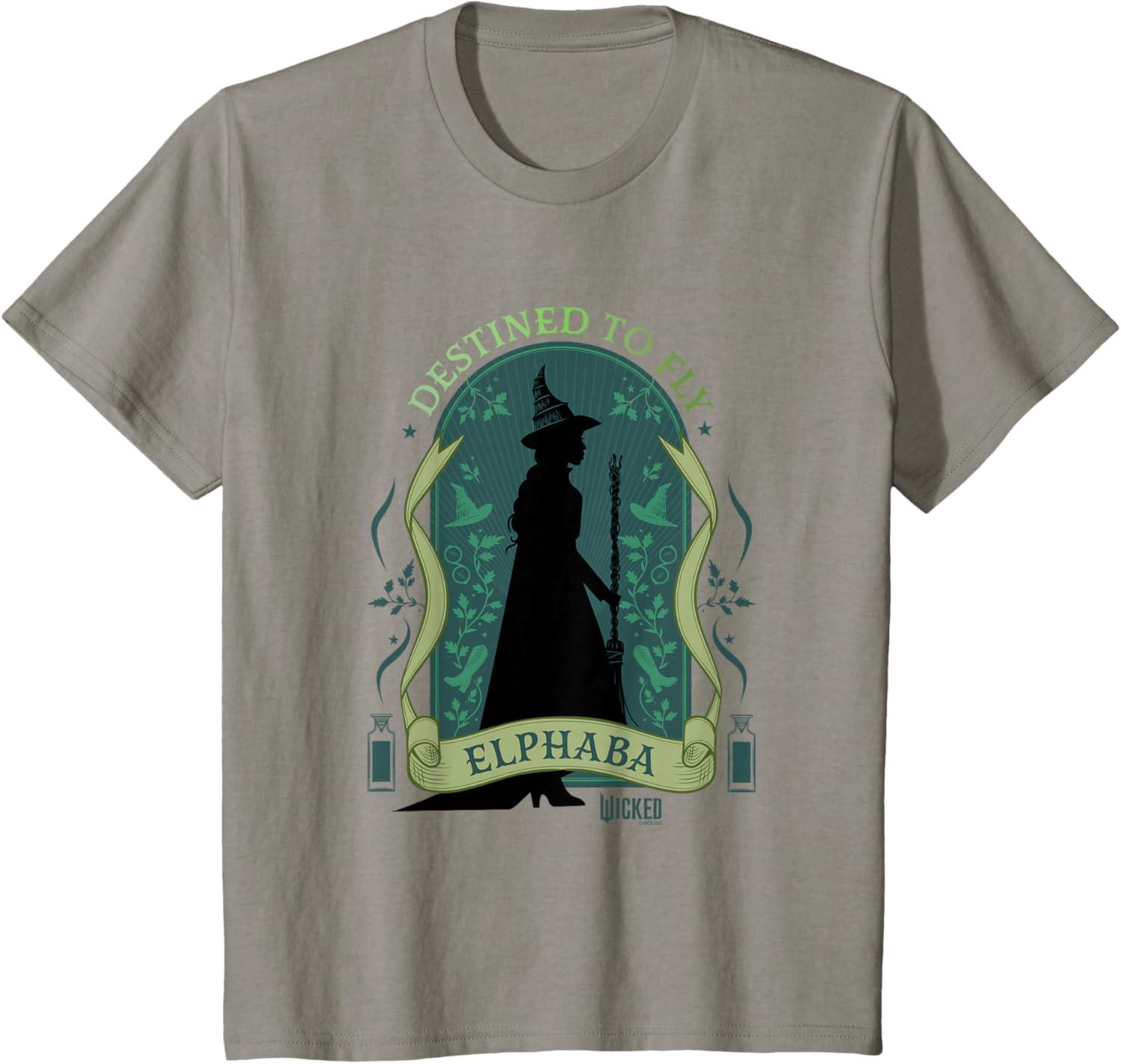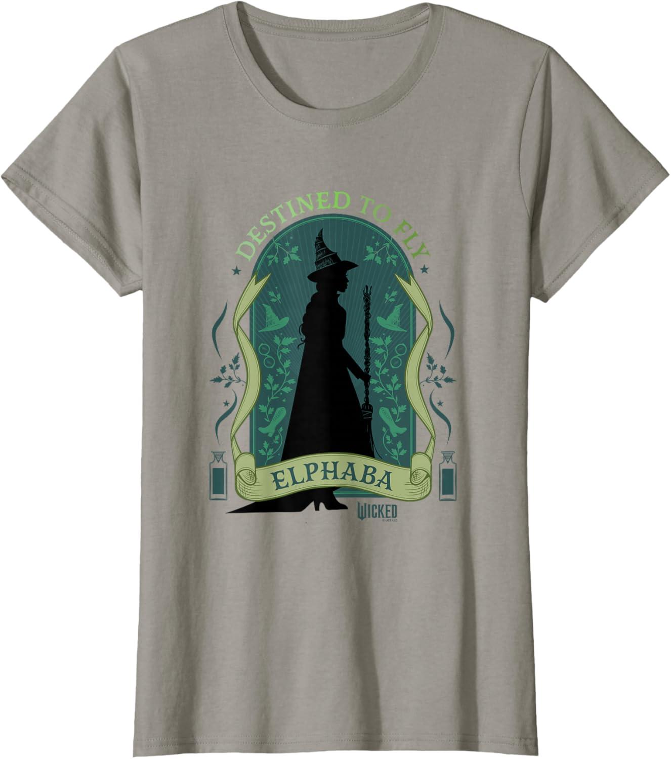 Wicked Elphaba Destined To Fly Silhouette Unisex-Adults T-Shirt, Black, Small(Asphalt Grey)