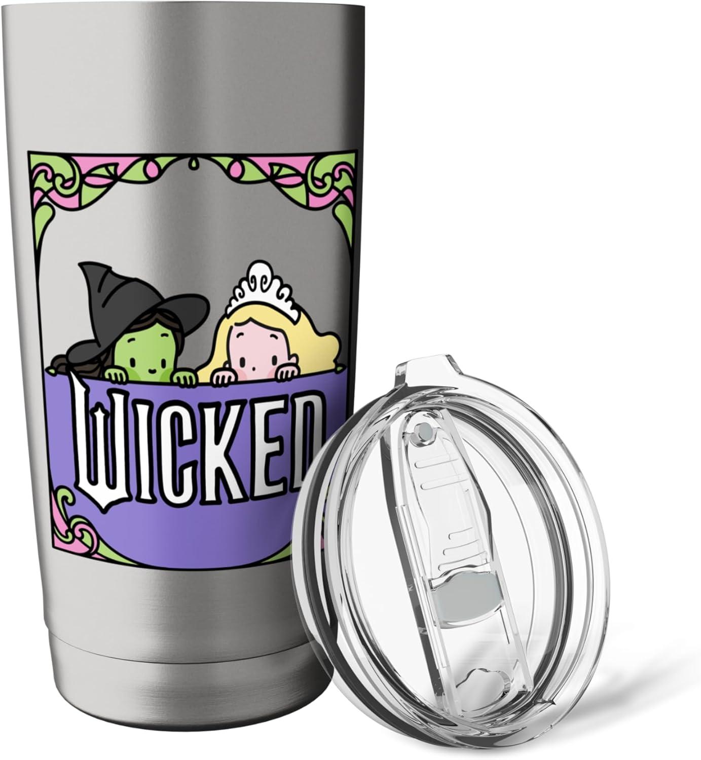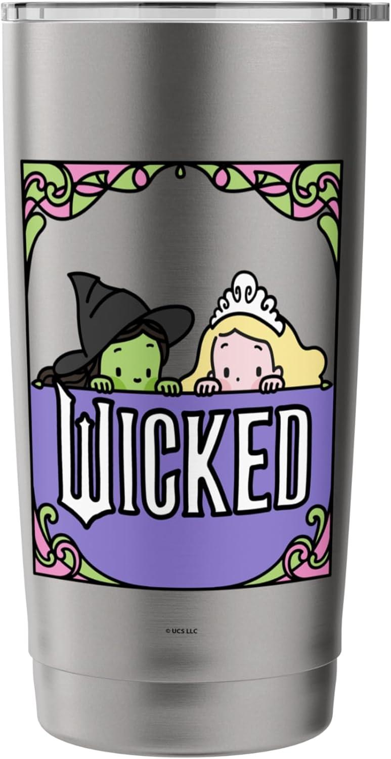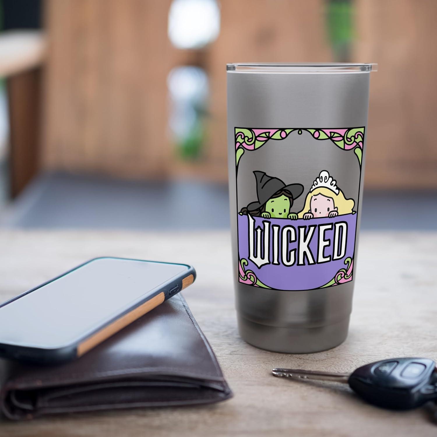 This playful Wicked movie design brings Elphaba and Glinda together in a whimsical illustration style, peeking out over the iconic Wicked logo. Double the charm, double the magic! Whether your team green or team pink, this adorable duo is here to sprinkle some fun into your day! It’s the perfect gift for fans ready to defy in style and sing their hearts out to every lyric of the enchanting songs. Wicked is the untold story of the witches of Oz. Elphaba, a young woman, misunderstood because of her unusual green skin, who has yet to discover her true power. Glinda, a popular young woman, gilded in privilege and ambition, who has yet to discover her true heart. The two meet as students at Shiz University in the fantastical Land of Oz and forge an unlikely but profound friendship. Following an encounter with The Wonderful Wizard of Oz, their friendship reaches a crossroads, and their lives take very different paths. Glinda's unflinching desire for popularity sees her seduced by power, while Elphaba's determination to remain true to herself, and to those around her, will have unexpected and shocking consequences for her future. Their extraordinary adventures in Oz will ultimately see them fulfill their destinies as Glinda the Good and the Wicked Witch of the West. To unleash more Wicked styles, fly over to the official Wicked Amazon page and discover T-shirts, tanks, V-necks, raglans, sweatshirts, hoodies, zip hoodies, throw pillows, cellphone grips, cellphone grip wallets, phone cases, Tumblers, totes, and more.