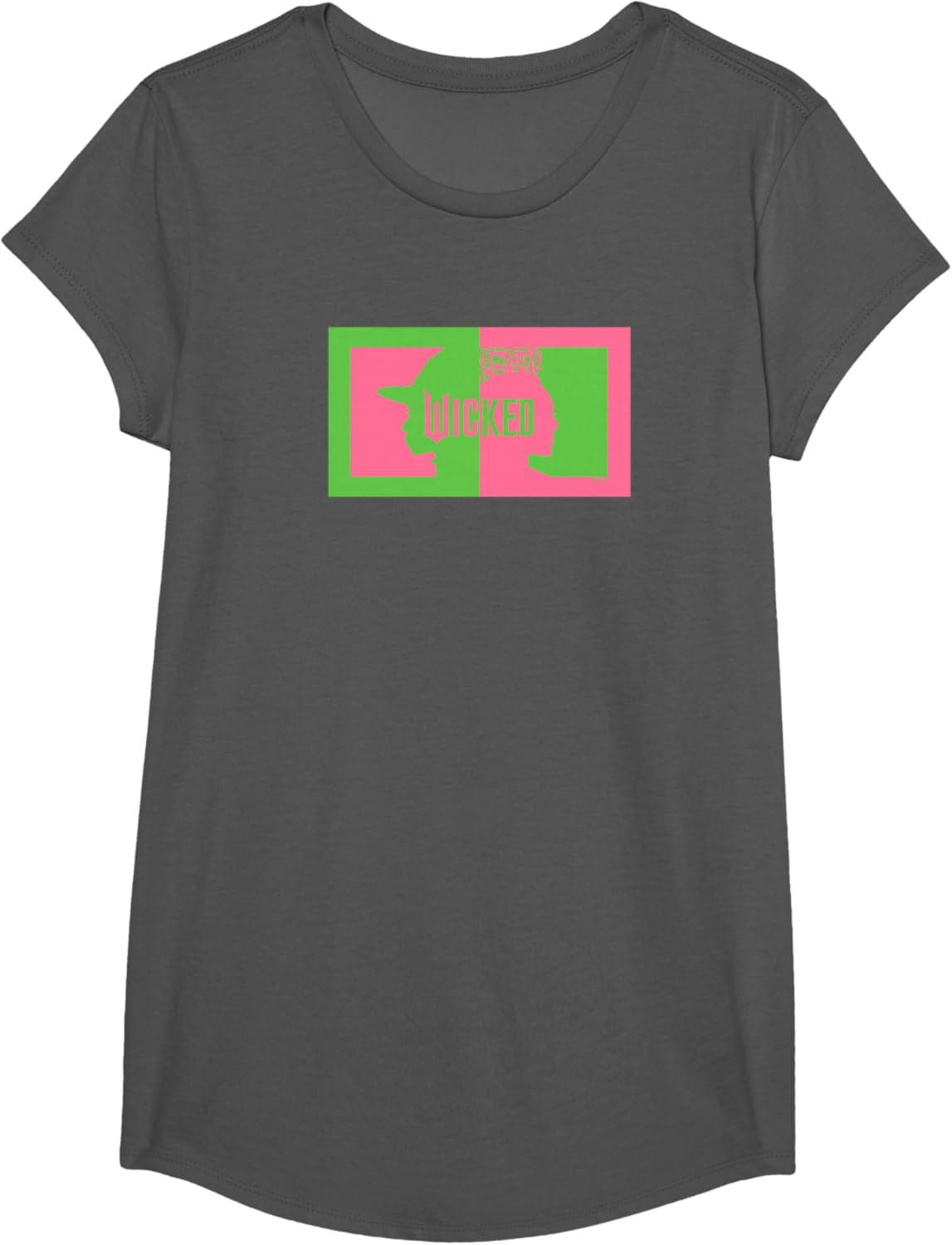 Wicked Elphaba & Glinda Silhouettes Unisex-Kids Black Cotton 100% Classic Fit Crew Collar Short Sleeve T-Shirt(Asphalt Grey)
