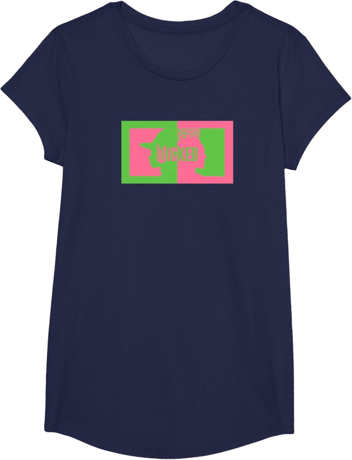 Wicked Elphaba & Glinda Silhouettes Unisex-Kids Black Cotton 100% Classic Fit Crew Collar Short Sleeve T-Shirt(Navy Blue)