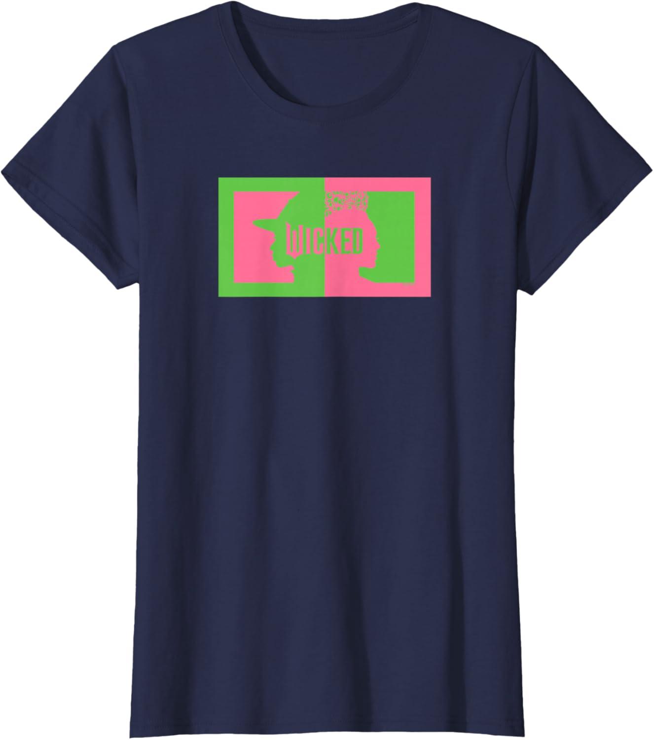 imageWicked Elphaba ampamp Glinda Silhouettes UnisexKids Black Cotton 100 Classic Fit Crew Collar Short Sleeve TShirtNavy Blue