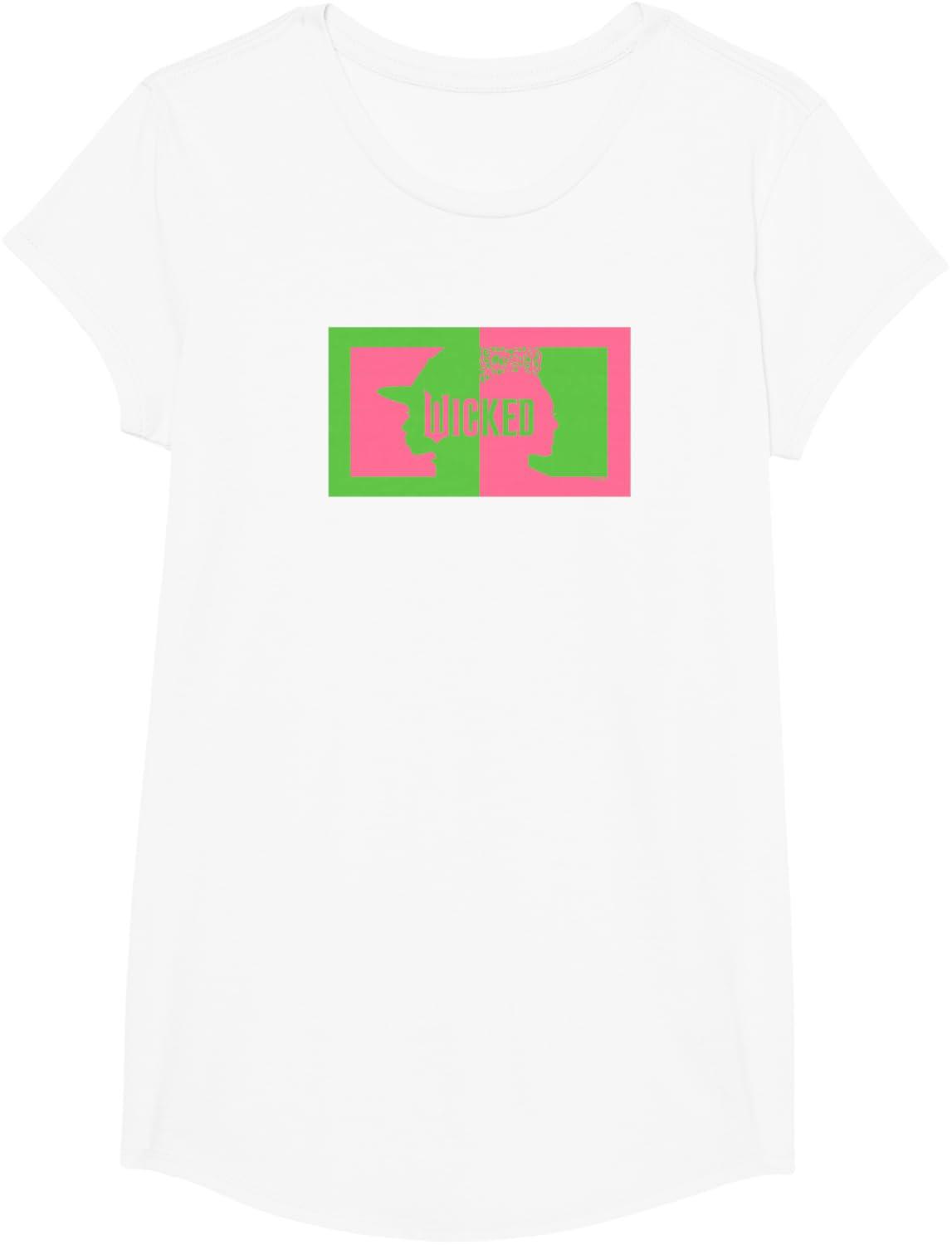 Wicked Elphaba & Glinda Silhouettes Unisex-Kids Black Cotton 100% Classic Fit Crew Collar Short Sleeve T-Shirt(White)