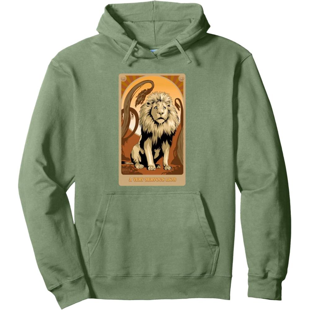Musical Theater design. Step into the golden glow of Oz with this whimsical Wicked: For Good tarot design. The Lion stands surrounded by a radiant sunburst, its playful rays shining courage and hope. Beneath him, the classic script reads “A very nervous lion,” celebrating bravery wrapped in gentle heart. For more magical apparel and accessories, visit the official Wicked Amazon page and discover your own Oz adventure.