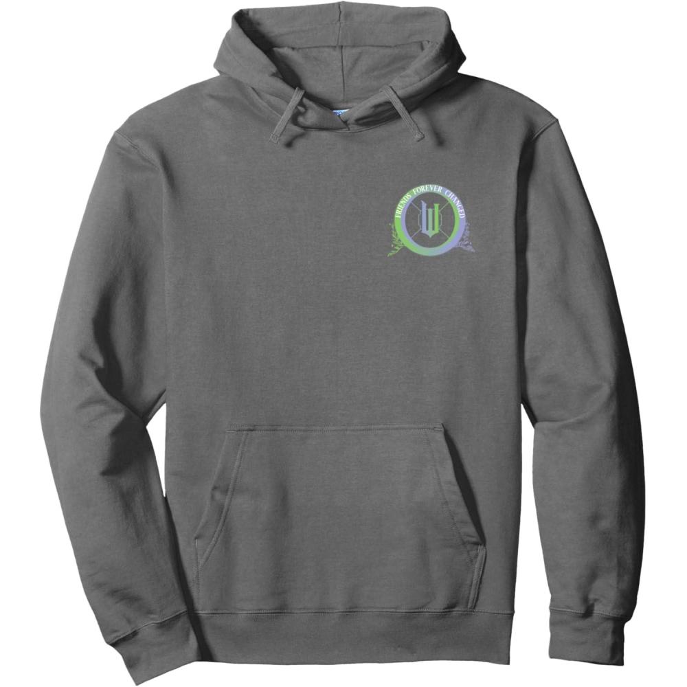 Whirl into the world of Oz with this heartfelt Wicked: For Good design featuring Glinda and Elphaba standing face to face beneath the words “Friends Forever Changed.” This front and back design features a pocket hit with the Wicked logo on the front. A touching tribute to their powerful bond that celebrates friendship, growth, and the magic of being changed for good. For more spellbinding styles, visit the official Wicked Amazon page and unleash your inner witch.