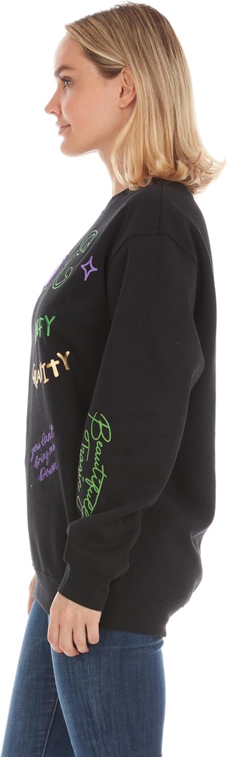 imageWicked Glinda ampamp Elphaba Womens Ladies ampamp Juniors Crewneck Sweatshirt with Embroidery ampamp Chenille Sleeve ampamp Back GraphicsBlack