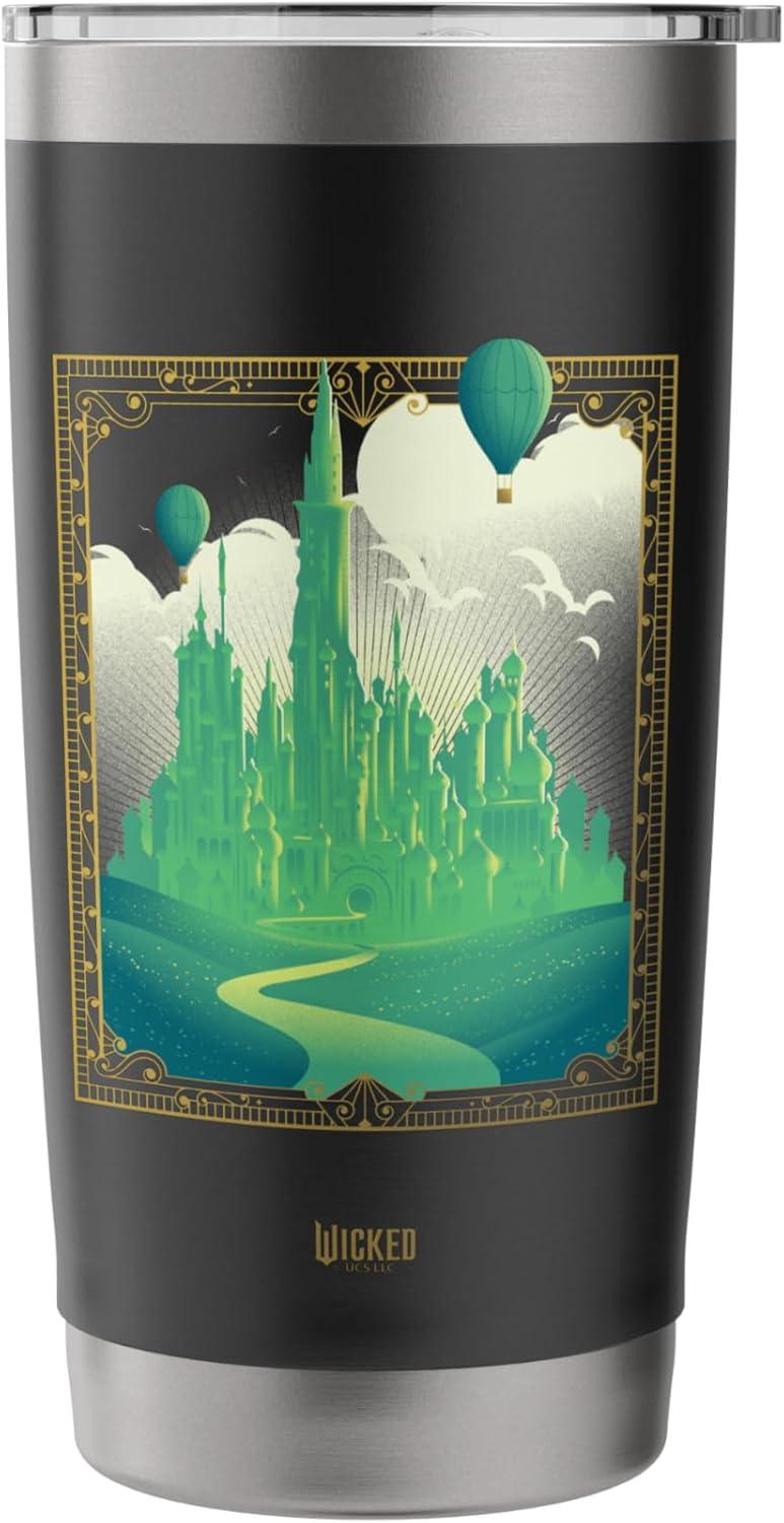 Welcome to the Emerald City. Where dreams sparkle in green, magic fills the air, and wonder waits around every corner! This vibrant design captures all the excitement of a trip to the iconic Emerald City. Home of our wonderful Wizard. This dual sided design featuring Greetings from the Emerald City on the front and the city itself on the back is the perfect keepsake to remember the time you spent in the fantabulous Emerald City. It’s like carrying a piece of Oz home with you. The perfect gift to show your gratitution for the person you would invite to the Ozdust. Experience the magic of Wicked with these Wicked movie designs. The untold story of the witches of Oz. Elphaba, a young woman, misunderstood because of her unusual green skin, who has yet to discover her true power. Glinda, a popular young woman, gilded by privilege and ambition, who has yet to discover her true heart. The two meet as students at Shiz University in the fantastical land of Oz and forge an unlikely but profound friendship. Following an encounter with The Wonderful Wizard of Oz, their friendship reaches a crossroads, and their lives take very different paths. Glinda's unflinching desire for popularity sees her seduced by power, while Elphaba's determination to remain true to herself, and to those around her, will have unexpected and shocking consequences on her future. Their extraordinary adventures in Oz will ultimately see them fulfill their destinies as Glinda the Good and the Wicked Witch of the West. To unleash more Wicked styles, fly over to the official Amazon page and discover T-shirts, tanks, V-necks, raglans, sweatshirts, hoodies, zip hoodies, hats, throw pillows, cellphone grips, cellphone grip wallets, Tumblers, phone cases, totes, and more.