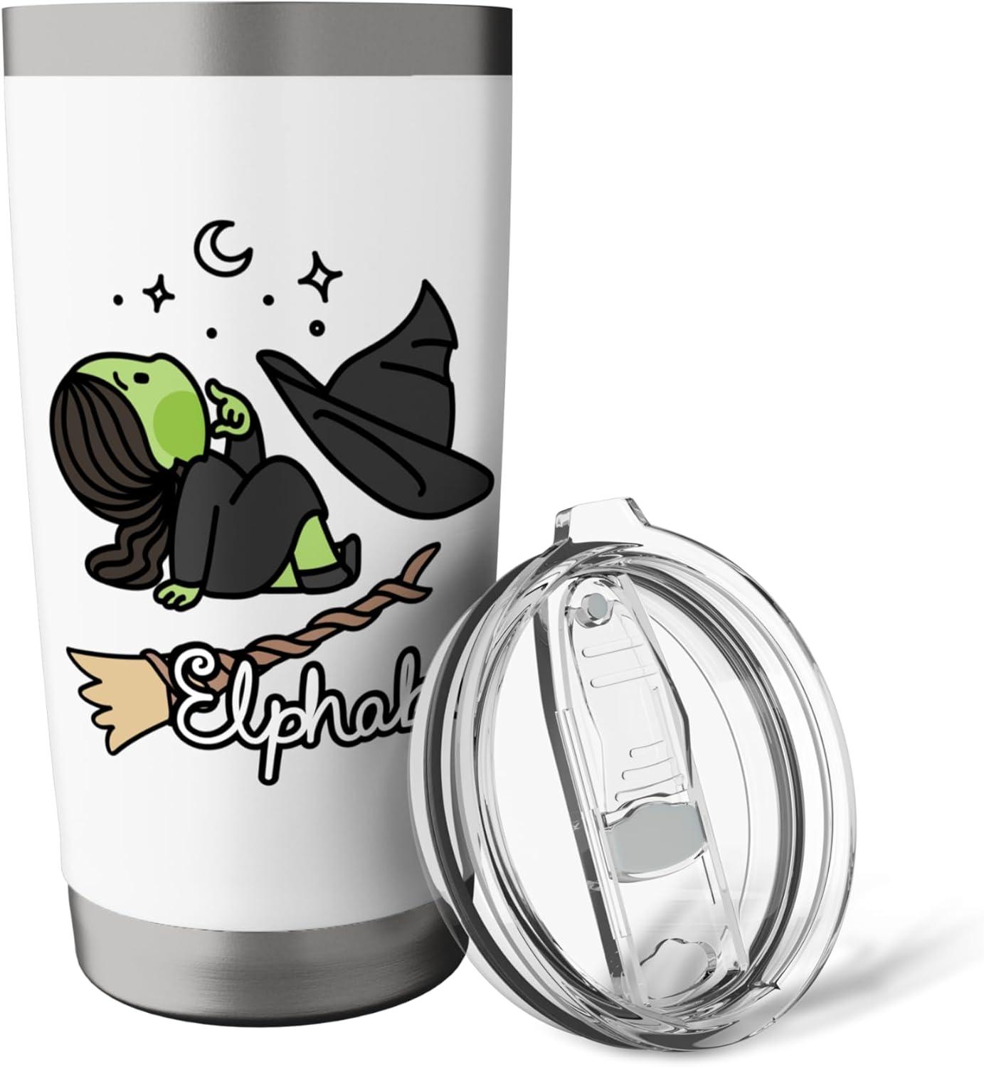 Wicked Logo Elphaba Daydreaming Playful Cartoon Style Stainless Steel Insulated Tumbler(White)