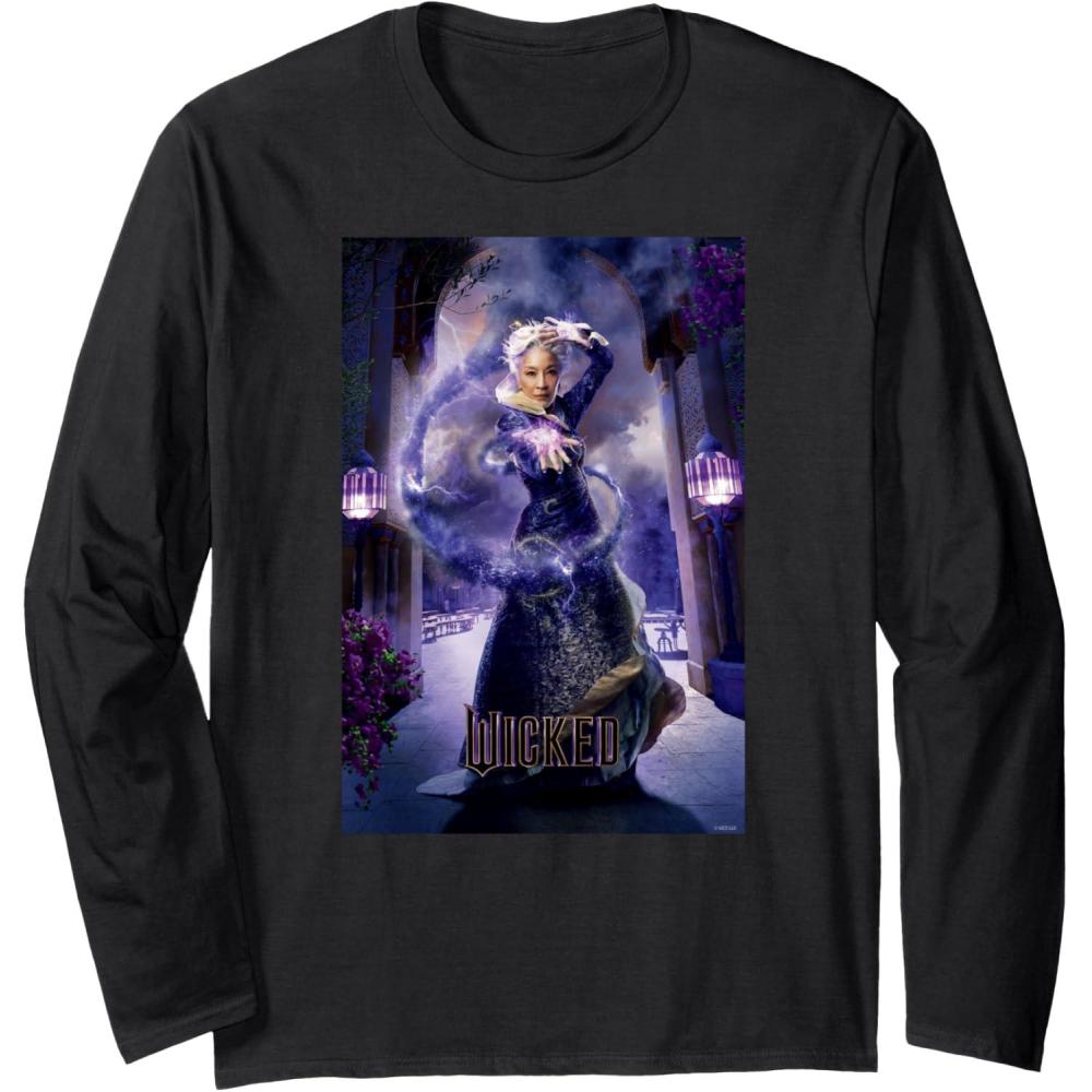 Wicked Musical Merchandise design. Madame Morrible commands attention in this enchanting hero design. Dressed in a regal purple gown, she channels her power, embodying the art of sorcery and manipulation. Perfect for Wicked fans who revel in her commanding presence and mysterious magic, this design brings Oz’s most cunning sorceress to life. Wicked is the untold story of the witches of Oz. Elphaba, a young woman, misunderstood because of her unusual green skin, who has yet to discover her true power. Glinda, a popular young woman, gilded in privilege and ambition, who has yet to discover her true heart. The two meet as students at Shiz University in the fantastical Land of Oz and forge an unlikely but profound friendship. Following an encounter with The Wonderful Wizard of Oz, their friendship reaches a crossroads, and their lives take very different paths. Glinda's unflinching desire for popularity sees her seduced by power, while Elphaba's determination to remain true to herself, and to those around her, will have unexpected and shocking consequences for her future. Their extraordinary adventures in Oz will ultimately see them fulfill their destinies as Glinda the Good and the Wicked Witch of the West. To unleash more Wicked styles, fly over to the official Wicked Amazon page and discover T-shirts, tanks, V-necks, raglans, sweatshirts, hoodies, zip hoodies, throw pillows, cellphone grips, cellphone grip wallets, phone cases, Tumblers, totes, and more.