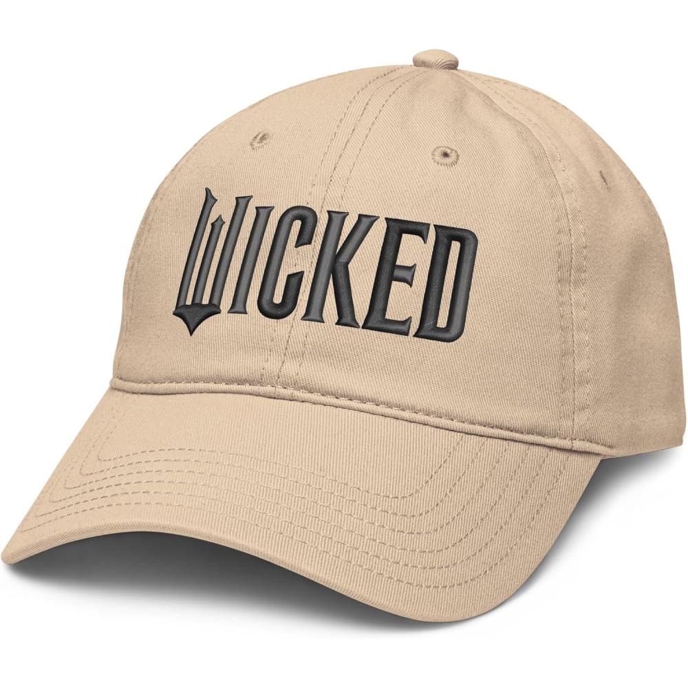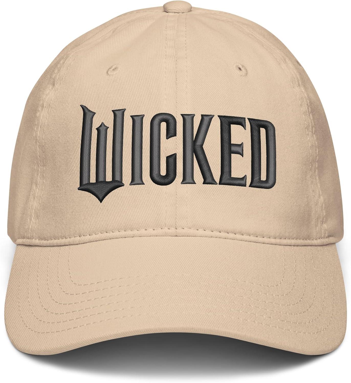 Experience the magic of Wicked with this Wicked movie logo hat. Top off your look with a hint of magic! Our Wicked hats bring a touch of Oz to your style with this Wicked hat featuring the signature logo in black. Wicked is the untold story of the witches of Oz. Elphaba, a young woman, misunderstood because of her unusual green skin, who has yet to discover her true power. Glinda, a popular young woman, gilded in privilege and ambition, who has yet to discover her true heart. The two meet as students at Shiz University in the fantastical Land of Oz and forge an unlikely but profound friendship. Following an encounter with The Wonderful Wizard of Oz, their friendship reaches a crossroads, and their lives take very different paths. Glinda's unflinching desire for popularity sees her seduced by power, while Elphaba's determination to remain true to herself, and to those around her, will have unexpected and shocking consequences for her future. Their extraordinary adventures in Oz will ultimately see them fulfill their destinies as Glinda the Good and the Wicked Witch of the West. To unleash more Wicked styles, fly over to the official Wicked Amazon page and discover T-shirts, tanks, V-necks, raglans, sweatshirts, hoodies, zip hoodies, throw pillows, cellphone grips, cellphone grip wallets, phone cases, Tumblers, totes, and more.