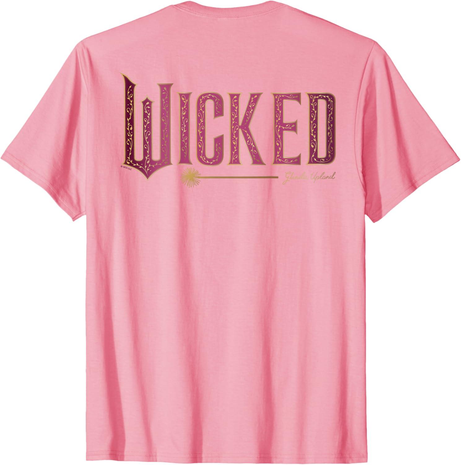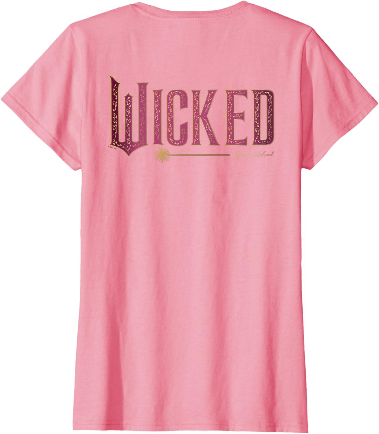 Wicked Movie Logo Glinda Pink And Gold Wand T-Shirt(Pink)