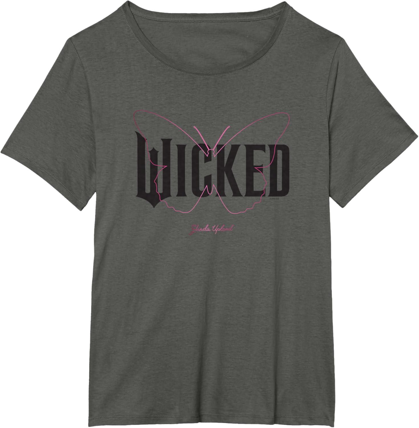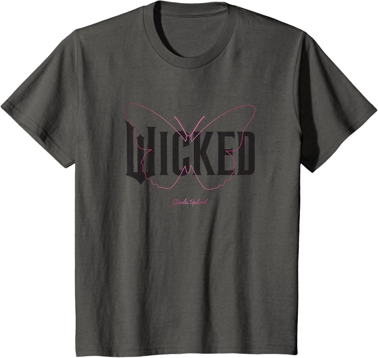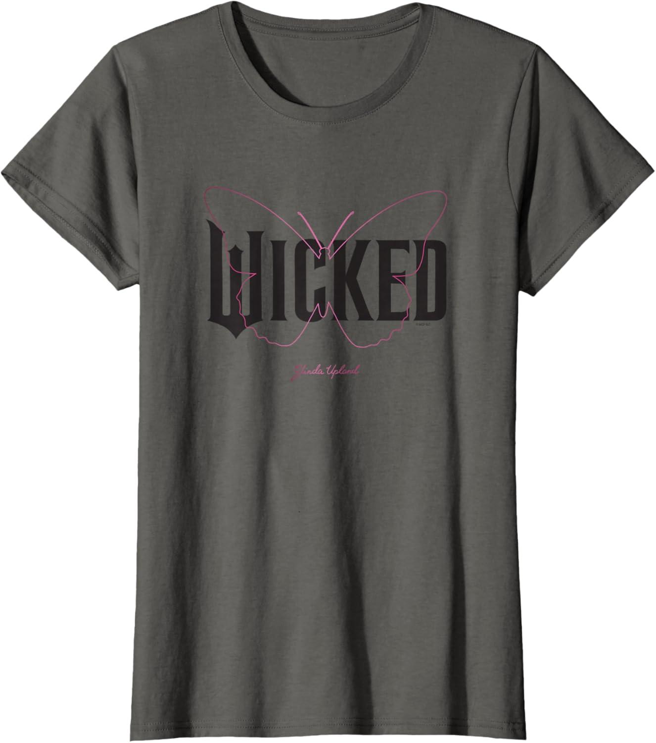 Capture Glinda’s sparkle with this delightful Wicked logo design. Featuring solid black lettering, a delicate pink butterfly outline, and Glinda Upland’s elegant signature, this design brings her uplifting spirit to life. It’s the perfect gift for fans ready to defy in style and sing their hearts out to every lyric of the enchanting songs. Wicked is the untold story of the witches of Oz. Elphaba, a young woman, misunderstood because of her unusual green skin, who has yet to discover her true power. Glinda, a popular young woman, gilded in privilege and ambition, who has yet to discover her true heart. The two meet as students at Shiz University in the fantastical Land of Oz and forge an unlikely but profound friendship. Following an encounter with The Wonderful Wizard of Oz, their friendship reaches a crossroads, and their lives take very different paths. Glinda's unflinching desire for popularity sees her seduced by power, while Elphaba's determination to remain true to herself, and to those around her, will have unexpected and shocking consequences for her future. Their extraordinary adventures in Oz will ultimately see them fulfill their destinies as Glinda the Good and the Wicked Witch of the West. To unleash more Wicked styles, fly over to the official Wicked Amazon page and discover T-shirts, tanks, V-necks, raglans, sweatshirts, hoodies, zip hoodies, throw pillows, cellphone grips, cellphone grip wallets, phone cases, Tumblers, totes, and more.