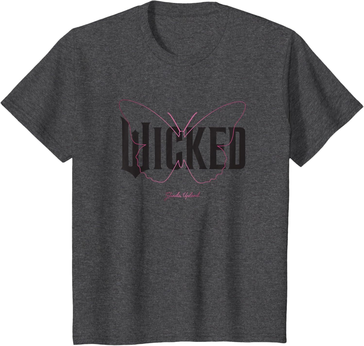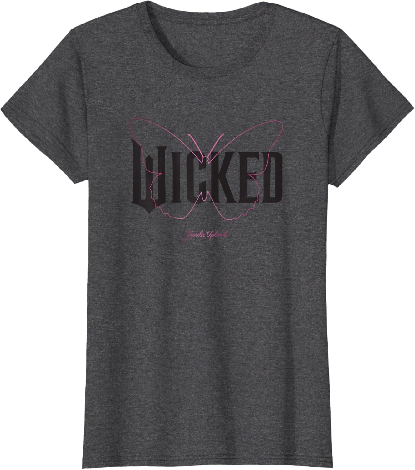 Capture Glinda’s sparkle with this delightful Wicked logo design. Featuring solid black lettering, a delicate pink butterfly outline, and Glinda Upland’s elegant signature, this design brings her uplifting spirit to life. It’s the perfect gift for fans ready to defy in style and sing their hearts out to every lyric of the enchanting songs. Wicked is the untold story of the witches of Oz. Elphaba, a young woman, misunderstood because of her unusual green skin, who has yet to discover her true power. Glinda, a popular young woman, gilded in privilege and ambition, who has yet to discover her true heart. The two meet as students at Shiz University in the fantastical Land of Oz and forge an unlikely but profound friendship. Following an encounter with The Wonderful Wizard of Oz, their friendship reaches a crossroads, and their lives take very different paths. Glinda's unflinching desire for popularity sees her seduced by power, while Elphaba's determination to remain true to herself, and to those around her, will have unexpected and shocking consequences for her future. Their extraordinary adventures in Oz will ultimately see them fulfill their destinies as Glinda the Good and the Wicked Witch of the West. To unleash more Wicked styles, fly over to the official Wicked Amazon page and discover T-shirts, tanks, V-necks, raglans, sweatshirts, hoodies, zip hoodies, throw pillows, cellphone grips, cellphone grip wallets, phone cases, Tumblers, totes, and more.