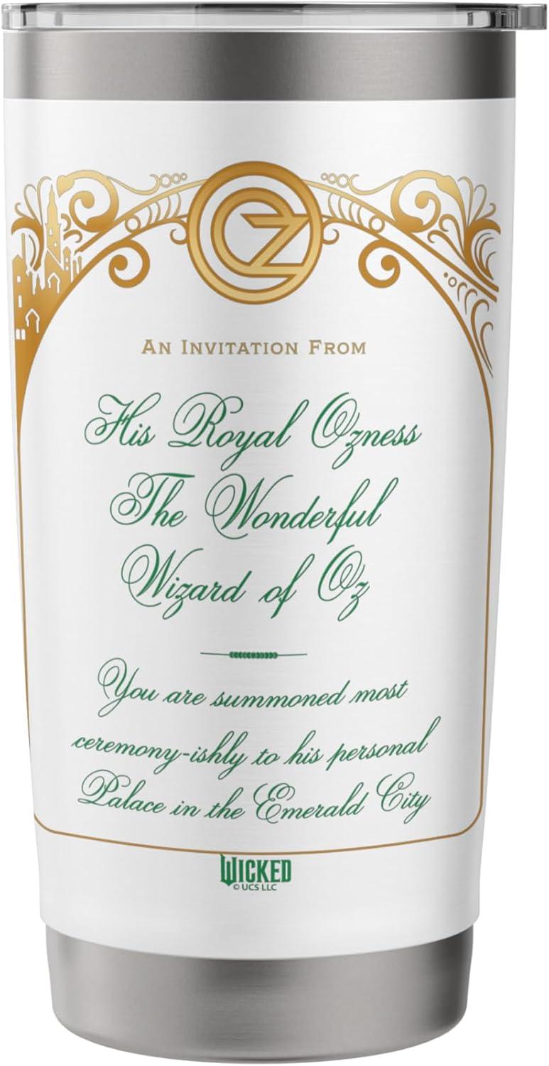 Congratulotions, the wonderful Wizard of Oz has summoned you to his personal palace in the Emerald City. Where dreams sparkle in green, magic fills the air, and wonder waits around every corner! This vibrant design captures all the excitement of a trip to the iconic Emerald City. Home of our wonderful Wizard. This design features the invitation from His Royal Ozness, the Wizard. It is the perfect keepsake to remember the time you spent in the fantabulous Emerald City. It’s like carrying a piece of Oz home with you. The perfect gift to show your gratitution for the person you would invite to the Ozdust. Experience the magic of Wicked with these Wicked movie designs. The untold story of the witches of Oz. Elphaba, a young woman, misunderstood because of her unusual green skin, who has yet to discover her true power. Glinda, a popular young woman, gilded by privilege and ambition, who has yet to discover her true heart. The two meet as students at Shiz University in the fantastical land of Oz and forge an unlikely but profound friendship. Following an encounter with The Wonderful Wizard of Oz, their friendship reaches a crossroads, and their lives take very different paths. Glinda's unflinching desire for popularity sees her seduced by power, while Elphaba's determination to remain true to herself, and to those around her, will have unexpected and shocking consequences on her future. Their extraordinary adventures in Oz will ultimately see them fulfill their destinies as Glinda the Good and the Wicked Witch of the West. To unleash more Wicked styles, fly over to the official Amazon page and discover T-shirts, tanks, V-necks, raglans, sweatshirts, hoodies, zip hoodies, hats, throw pillows, cellphone grips, cellphone grip wallets, Tumblers, phone cases, totes, and more.