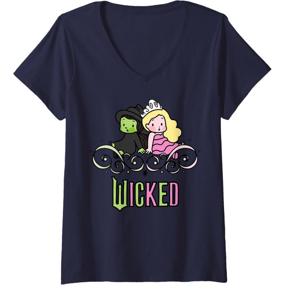 Be the first to review “Womens Wicked Elphaba & Glinda Together Playful Cartoon Style V-Neck T-Shirt(Navy Blue)”
