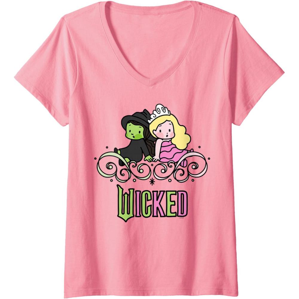 imageWomens Wicked Elphaba ampamp Glinda Together Playful Cartoon Style VNeck TShirtPink