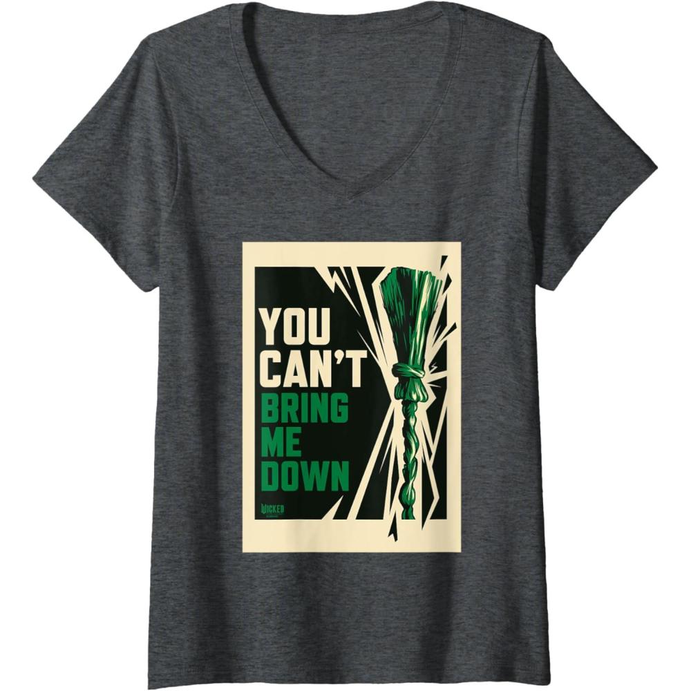 Embrace unstoppable strength with this bold Wicked: For Good design. Featuring Elphaba’s iconic broom alongside the empowering phrase “You can’t bring me down,” this artistic poster-style image uses soft yellow, black, and green tones to celebrate resilience and the unbreakable spirit of Oz’s fiercest witch. Perfect for fans who believe in standing strong no matter what. For more magical apparel and accessories, visit the official Wicked Amazon page and unleash your inner power.