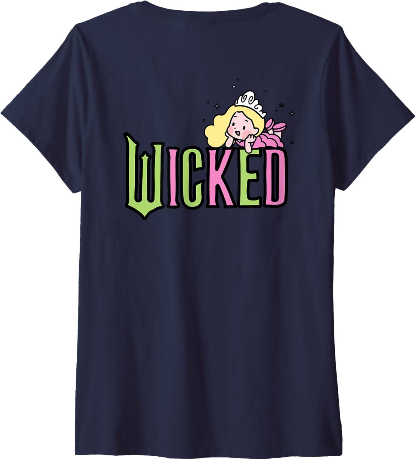 Be the first to review “Womens Wicked Logo Glinda Daydreaming Playful Cartoon Style V-Neck T-Shirt(Navy Blue)”
